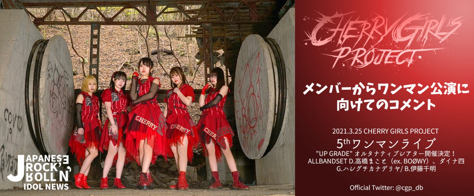TEXT:長澤智典 ハシグチカナデリヤ(G)・伊藤千明(B)・高橋まこと(ex BOØWY:Dr))・ダイナ四(Dr)と、最強のミュージシャンをメンバーに迎えて開催。CHERRY GIRLS PROJECT、3月25日のワンマン公演へ向け、ライブの見どころを激白。ツインドラムは見逃せない!! 3月25日(木)、オルタナティブシアターを舞台に通算5度目となるワンマン公演「UPGRADE」を行なうCHERRY GIRLS PROJECT。この日は、ハシグチカナデリヤ(G)・伊藤千明(B)・高橋まこと(ex BOØWY:Dr))・ダイナ四(Dr)と、最強のミュージシャンをメンバーに迎えて行なうバンドスタイルでのライブ。昨年10月にも新宿BLAZEでバンド編成でのライブを経験しているとはいえ、当時は、前半をオケスタイルで。後半をバンド編成でという形だった。今回は、最初から最後までバンド編成での公演になる。しかも終盤には、ツインドラムというスタイルでもライブをお届けする。 当日、どんなワンマン公演になるのか。このたび、メンバーからワンマン公演に向けてのコメントが届いたので紹介したい。 来瞳舞夢 CHERRY GIRLS PROJECTの掲げたコンセプトの一つにあるのが、「境界線を超える」こと。今のCHERRY GIRLS PROJECTの音楽性がロック好きな人たちにも刺さることから、最近ではロック系のイベントフェスに呼んでいただける機会も増えました。最近でも、東名阪を舞台にした「ちょこフェス」に呼ばれれば、4月17日に下北沢のライブハウス10会場を舞台に行なう「KNOCK OUT FES」更に5月に名古屋で開催される「GOLDRUSH」にも、バンドさんに混じりながらライブを行ないます。他にも異ジャンルからのお誘いをいただく機会が少しずつですけど増えているように、CHERRY GIRLS PROJECTとしてもこの機会は大きなチャンスとして受け止めているし、今後へ活かそうと動き始めています。 真志取みらい 「ちょこフェス」は、東名阪全部に出させていただきました。実際にライブをやってみると、音楽にジャンルという境界線などないんだなというのを強く感じたと言いますか、CHERRY GIRLS PROJECTには、ジャンルという境界線を超えてゆく力があるんだと体感することが出来ました。だからこそこれからは、ロック系の大きなフェスへも出演の挑戦を仕掛けながら、異ジャンルでも積極的に勝負していきたいなと思っています。実際に体験したことで、音楽好きな人たちに刺さる音楽をCHERRY GIRLS PROJECTはやっているんだというのも実感できましたし。 来瞳舞夢 今の5人なら、どんな境界線も超えていける力を持っていると信じています。だからこそ、これからのCHERRY GIRLS PROJECTは、いろんな異ジャンルの境界線を越えた活動もしていきますし、その異なるジャンルの中でもチェリガが一番だったと言われるのがこのテーマの目指すべきところです。 真志取みらい CHERRY GIRLS PROJECTは、3月25日にオルタナティブシアターを舞台に、通算5度目となるワンマン公演「UPGRADE」を行ないます。この日は、ハシグチカナデリヤ(G)さん・伊藤千明(B)さん・高橋まこと(ex BOØWY:Dr))さん・ダイナ四(Dr)さんと、最強のミュージシャンをバンドメンバーに従えてのライブになります。前回の新宿BLAZEワンマン公演に続いてのバンド編成でのワンマンライブになるんですけど。今回は、Mr.K発案のダブルドラム編成。それってすごくないですか?! ユーチューバードラマーと伝説のアトミックドラムを組ませるという大胆過ぎる発想です。 来瞳舞夢 新宿BLAZEでやったワンマン公演のときは、初のバンドを従えてということから、バンド演奏の迫力に歌が押し負けていた面もあって、それが悔しかったんですね。だからこそ、今回はバンドサウンドに負けないように。逆に、バンドの音を操れるくらい自分たちの歌でひっぱりながら、みなさんを魅了できたらなと思っています。バンドの音を背にして歌うと、本当に気持ちが昂っていくんですね。キーだって、音の迫力に刺激を受け、いつもの自分以上の音域まで出ます。だからこそ今回のワンマン公演でも、自分の限界を突破したライブパフォーマンスを見せたいです。 優希瞳 CHERRY GIRLS PROJECTのライブの魅力は、表現力豊かなところ。そこにプラスして最近思っているのが、振りに一人一人が個性を出しているうえで、その振りがしっかり一体化して見えてゆくところ。観る側からしたら、一体感を持った振りをしているように見えると思いますが、じつはその中に各自の個性も出ているので、細かいところまで見ていただけたら嬉しいです。 真志取みらい オルタナティブシアターさんは、ホール会場といこうこともあって椅子席になります。でも、場内にはLED照明の設備など、魅せる面での演出を形作れる設備もいろいろ設置してあります。今回は、オルタナティブシアターさんだからこその環境を最大限に使いながらパフォーマンスをしてゆくように、この会場で行なうワンマン公演だからこそ見れる演出も、ぜひ楽しんでください。 真汐里緒 前回のバンド公演は、前半をオケに、後半をバンド編成でという形で行ない