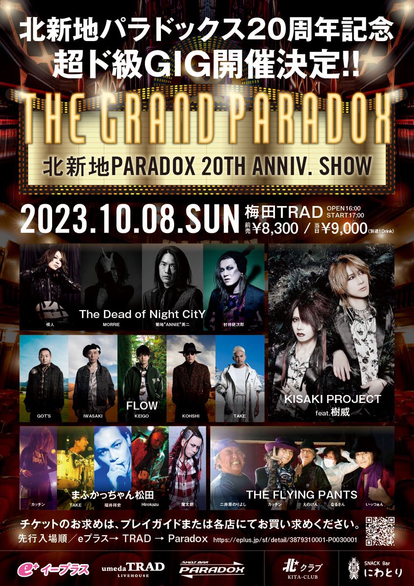 The event is called 「THE GRAND PARADOX」 because it’s hosted by Katchin-san who runs a bar called PARADOX. Since I’ve often been indebted to him, I’m happy to have agreed to participate in this event in the hope that I can also add some flair to PARADOX’s 20th anniversary and Katchin-san own 60th birthday celebration. So this event will be and feel different from my own 30th anniversary. However, this be my last time as 「KISAKI PROJECT feat 樹威(Jui)」, so those who have many memories etched in their hearts should definitely take a look at our heroic side.